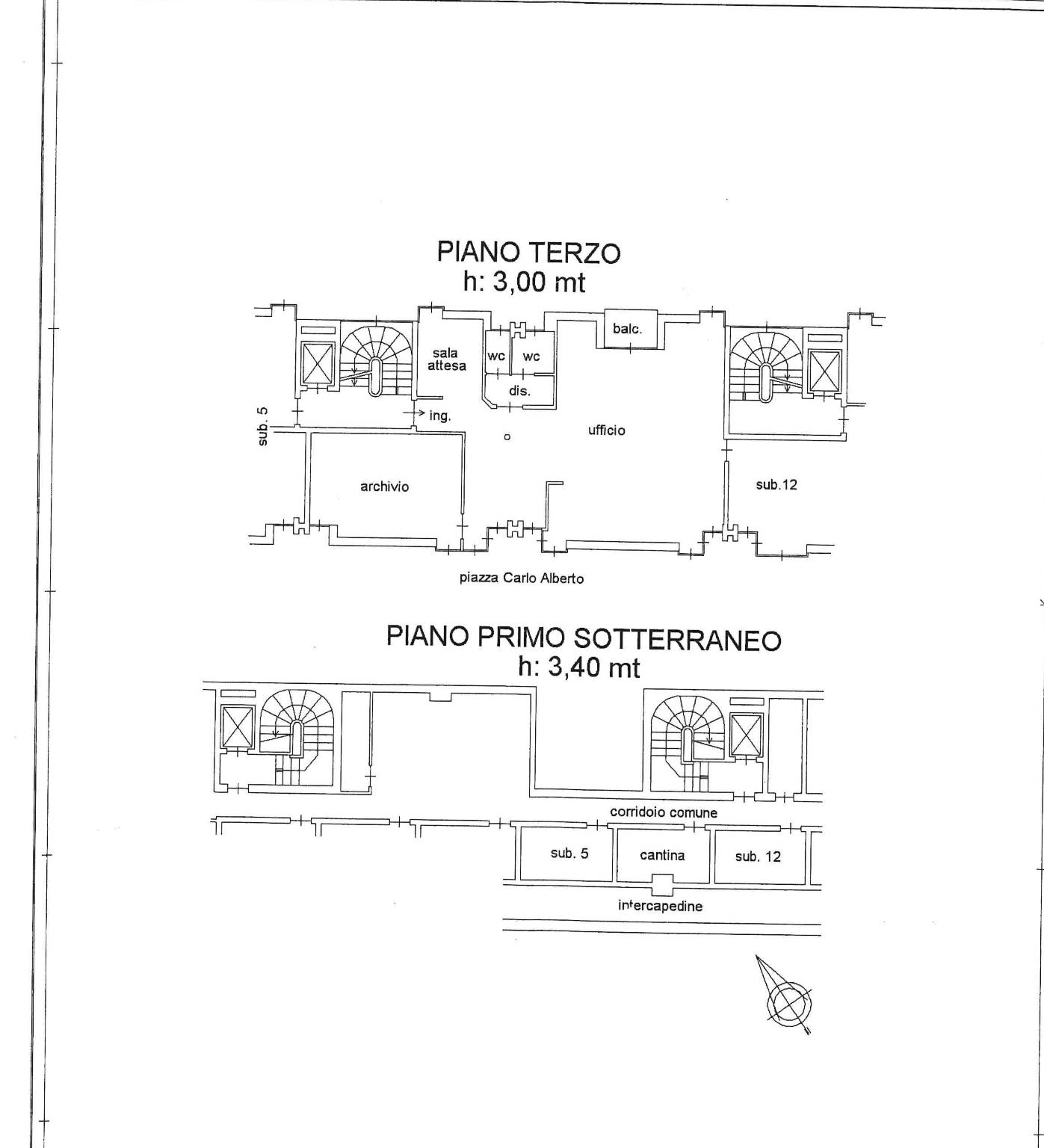 In zona centralissima con affaccio su Piazza Carlo Alberto, proponiamo ampio appartamento sito al terzo piano dello stabile , con ascensore, così suddiviso: ingresso, ampio open space, altra stanza, antibagno e servizi, balcone e cantina al piano primo sotterranero. L'immobile è stato sempre utilizzato come ufficio ma vi è la possibilità di cambio di destinazione d'uso da ufficio a residenziale.